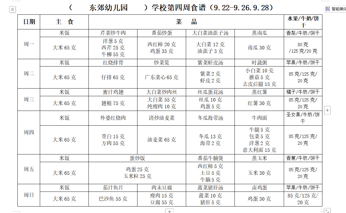东郊幼儿园2025-2026第一学期第四周幼儿食谱