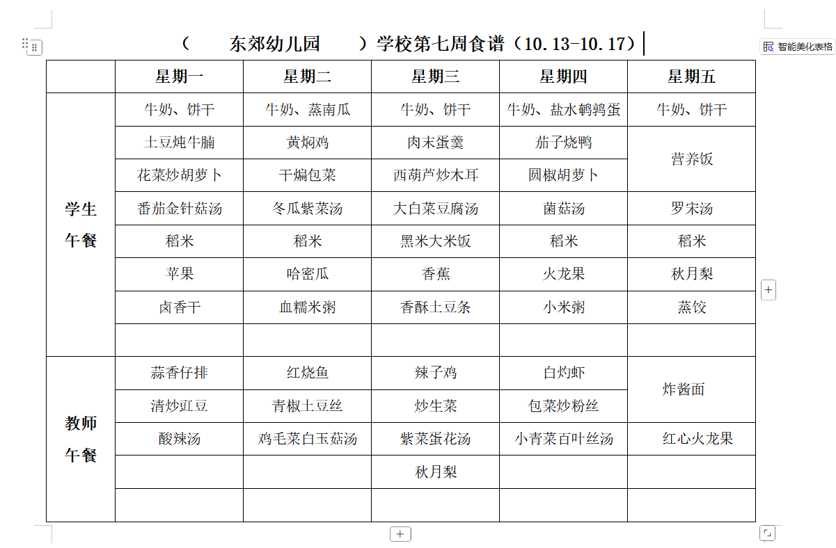 东郊幼儿园2025-2026第一学期第六周幼儿食谱
