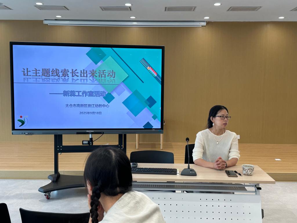 为了进一步提高教师的课程意识,提升备课组长的课程审议能力,辨析主题计划中相关要素之间的关系,进一步完善主题计划,2025年9 月 18 日 14:00-16:00,新蕊工作室在东郊幼儿园二楼会议室开展了“让主题线索长出来 ”专题研讨活动。活动由太仓市高新区娄江幼教中心业务主任毛丽芳主持,新蕊工作室全体成员参与。