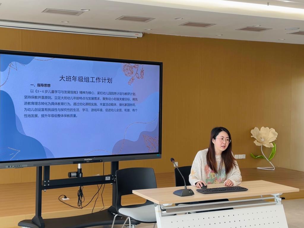 首先,李老师详细介绍了大班年级组工作计划,涵盖指导思想、现状分析、工作目标与具体措施,明确以《3~6 岁儿童学习与发展指南》为核心,聚焦幼小衔接,依托经验与活力兼具的教师团队推进保教工作;其次,李老师逐一讲解大班上学期《你变我变大家变》《中国娃》等六大课程的实施重点,展现课程在幼儿成长、认知、情感培养上的全面设计;最后,各班家长代表积极交流感想,分享参会收获与支持意愿,李老师也对家长们的认可与配合作出回应。