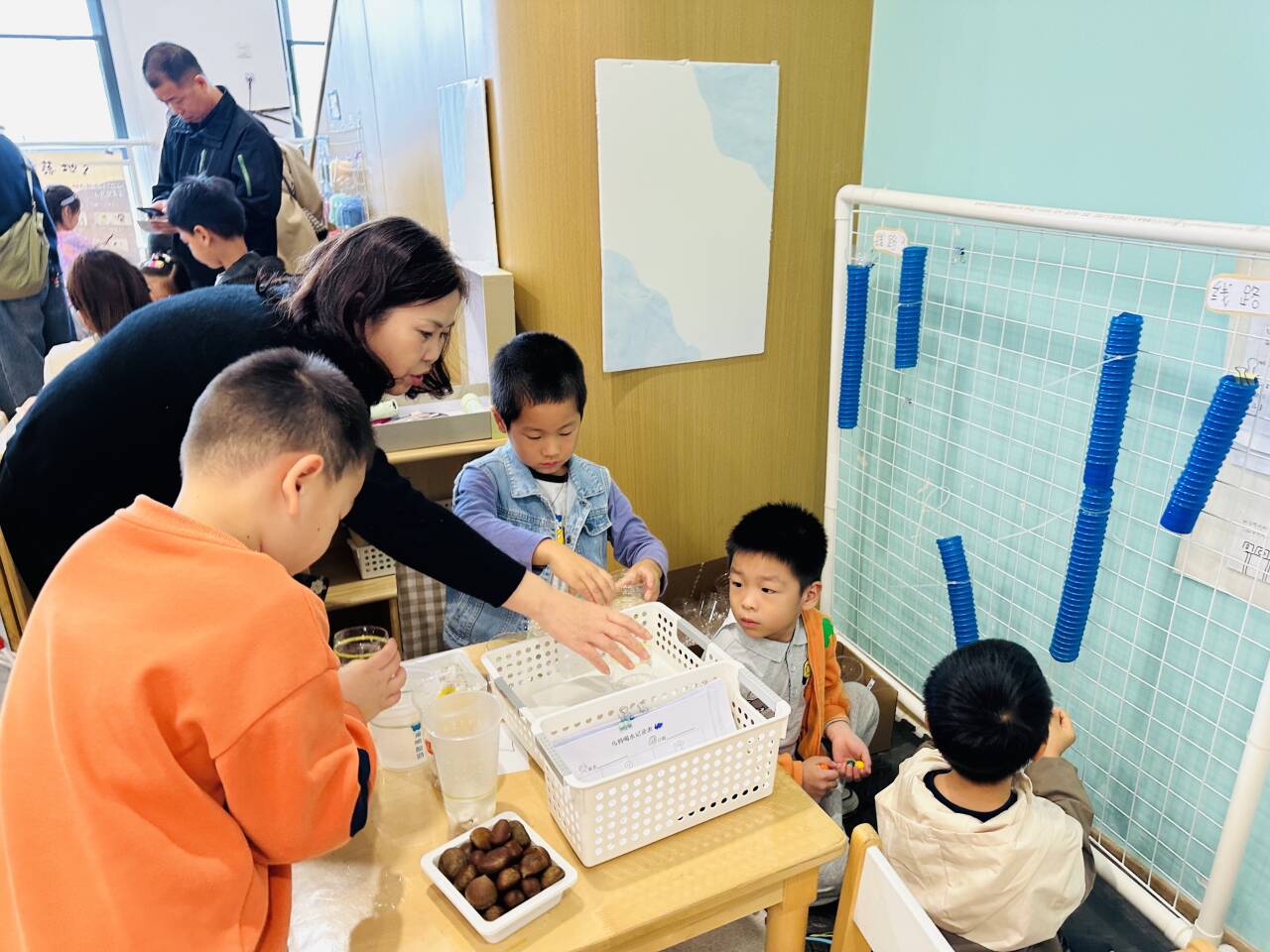 活动伊始,家长们零距离观察孩子们的各项活动,从自主盥洗、有序进行区域游戏,到专注参与集体教学活动,孩子们展现出的独立性与专注力,让家长们频频点头。户外晨锻时,孩子们每一个动作都充满力量与节奏感;在集体教学活动中,孩子们通过趣味操作理解抽象概念,大胆分享自己的想法;随后家长们参观了孩子们的区域游戏、角色游戏以及专室活动;活动紧凑有序,家长们通过直接感受、亲身体验、实际操作真正了解到孩子们在园的日常生活。