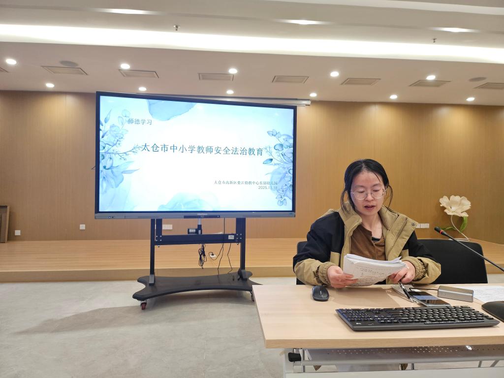 2025年11月18日,太仓市高新区娄江幼教中心东郊幼儿园全体教师在二楼会议室开展《太仓市中小学教师安全法治教育》师德培训活动,本次活动4学时。