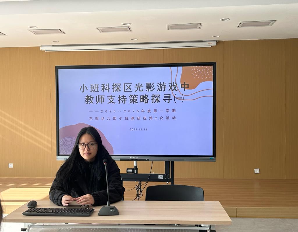 为落实前期教研中提炼的幼儿深度学习识别维度,破解小班科探区光影游戏中教师支持的实践困惑,推动教师从 “精准识别” 向 “有效支持” 进阶,2025 年 12 月 12 日上午9:00-11:00,太仓市高新区娄江幼教中心东郊幼儿园小班组全体教师再次齐聚二楼会议室,开展以“小班科探区光影游戏中教师支持策略探寻㈠”为主题的第 2 次专题教研活动。